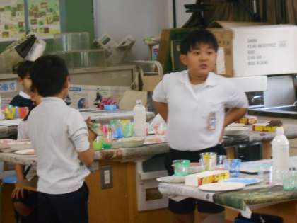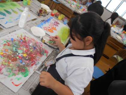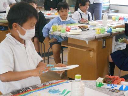 振り返りの時に、いろいろな色や形ができて楽しかったことを発表しました。