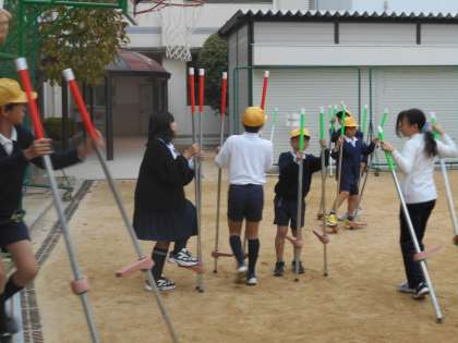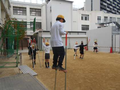 5年生で幼稚園や保育所で竹馬をしていたという子もいましたが、初めてという子もいました。