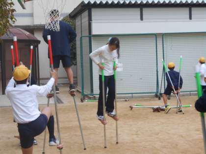 中央区にあるわかば財団から、体育の研究助成金をいただき、新しく竹馬と一輪車が入りました。