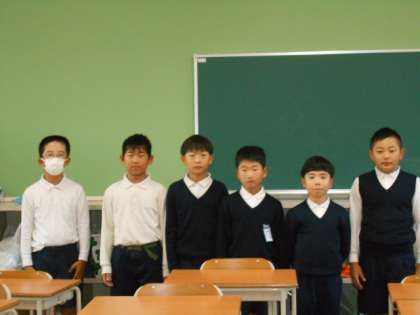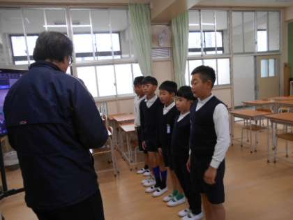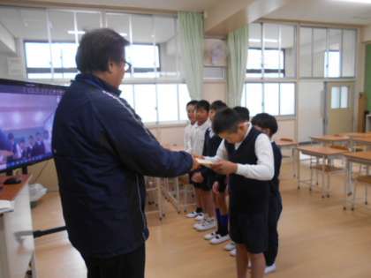 ソフトボールの福島区選抜に参加していた5年生、4年生児童が11月19日に行われた大阪府予選で見事に優勝し20日の児童朝会で表彰されました。
