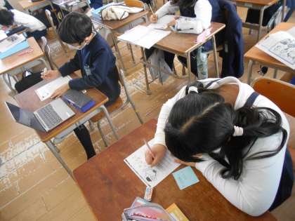 4−2で先日の社会見学で「淀川左岸線」の見学のお礼の手紙を書いていました。