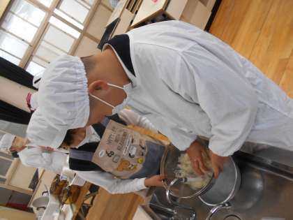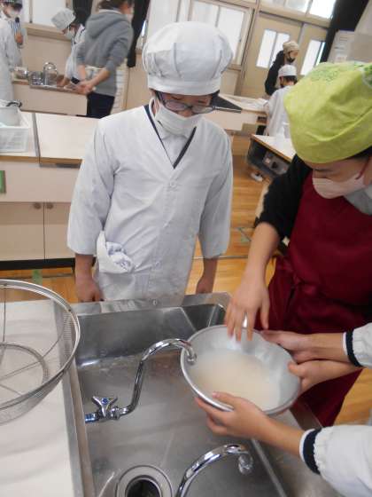 5−1の家庭科「みそしるとごはん」の調理実習です。