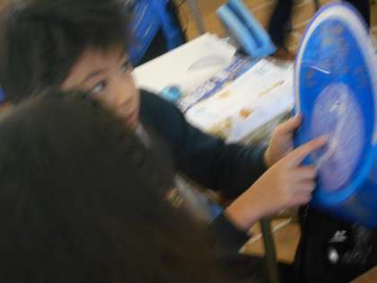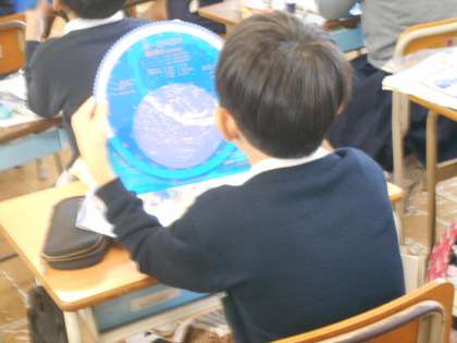 星座盤を使って、何時にどんな星が見えるかを調べていました。