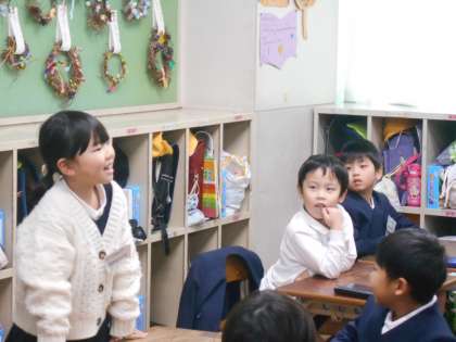 食べ物ネタで、英語に親しみました。ハンバーガー、パンケーキ、マカロン、スパゲッティなど、もともとどこの国の料理、食べ物かをクイズ形式で当てました。