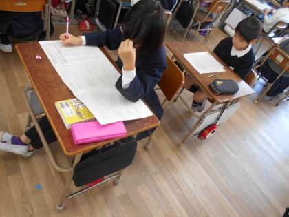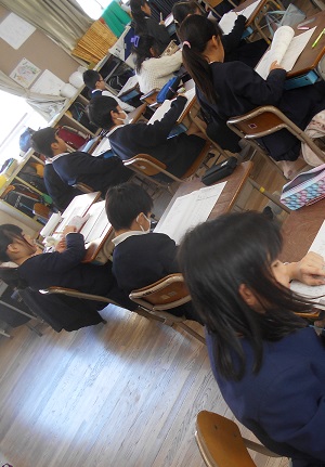 3年生は学力経年調査に初めて取り組みました。ふだんは1枚か2枚のテストが多いのですが、今回は冊子(本のように)なっています。練習はしてきましたが、疲れたのではないでしょうか?良くがんばっていました。写真上は3−2、写真下は3−1です。