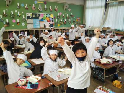 大喜びの各教室です。写真は、上から1−1、中6−1、下2−1です。