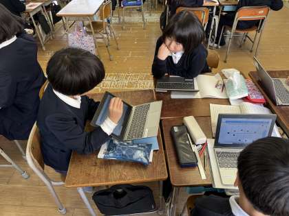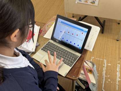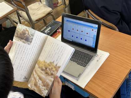 タブレットを使って、登場人物の気持ちの変化を考えていました。