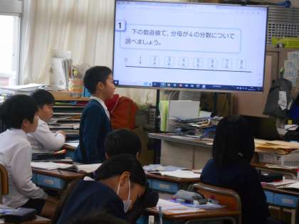 「分数の大きさを調べよう」という学習でした。分母が4の時、分子がいくつの時