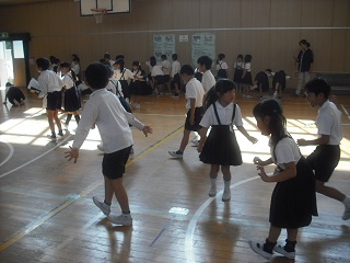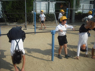 10月21日(水)今日も体力ビンゴの取り組みが続いていました。鉄棒では、ぶら下がる・上がる・回る・下りるなどいろいろな技に挑戦していました。体育館では、うで立てふせ(30秒間に何回できるか)や、ペンギン歩き(ペンギンの格好でつま先をあげて歩き、30秒間で何m歩けるか)を記録しました。