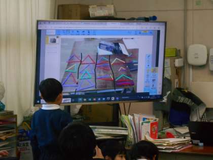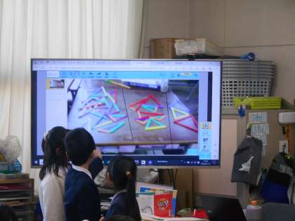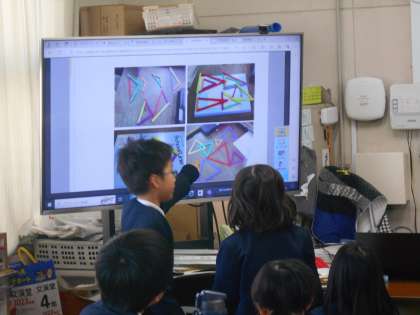 今日のめあては「辺の長さに注目して三角形をなかまわけしよう」でした。