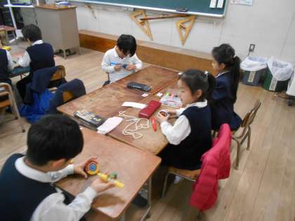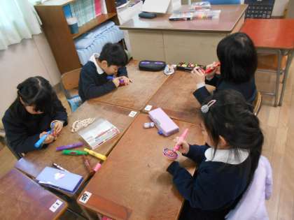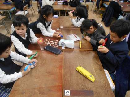色を塗ってから、試しに少し手で回しながら、回転してどんな模様になるのかを考える姿がとてもかわいかったです。