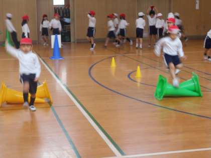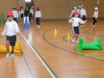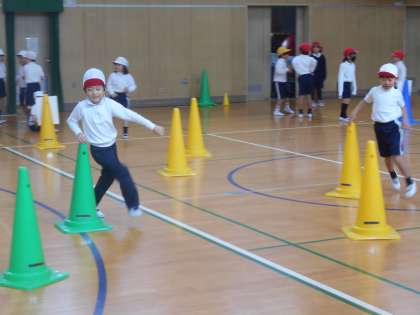 いろいろな場所を曲線に走ったり、回ったりして走っていました。