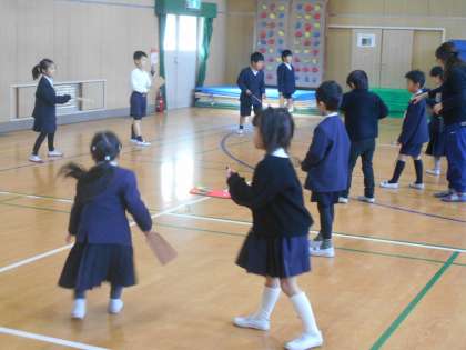 羽子板をするのも初めての子が多かったようですが、こちらはなんとなくやり方もわかっているようでどんどん取り組んでいました。
