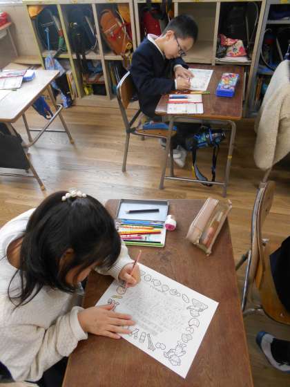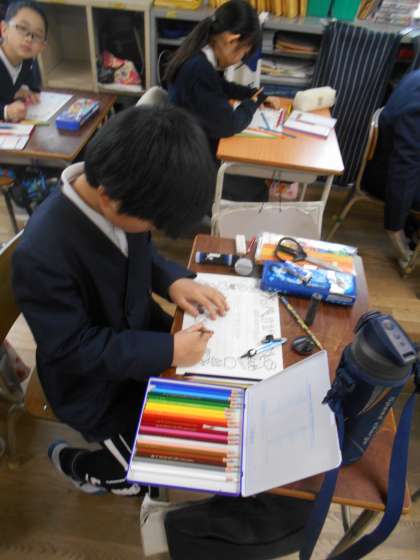 来週の給食週間に備えて、給食調理員さんに感謝の手紙を書いていました。