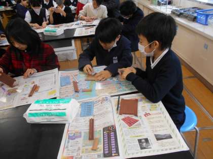 今日は、職人さんに来ていただいて、唐木指物のフォトフレームを作る体験学習をしました。