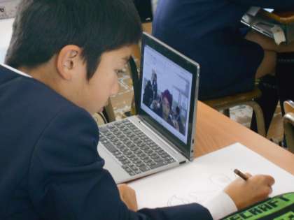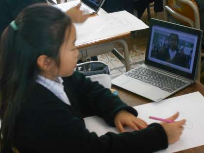 タブレットで自分を撮影して、版画で彫りやすいように下絵を描いていきます。