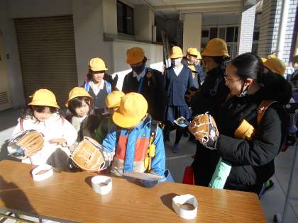 5時間目の下校時刻に合わせて、子どもたちに触れるような場所を設置しました。