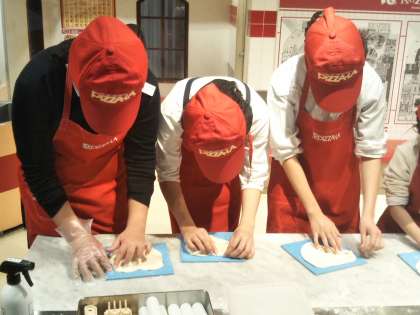 ピザ職人さんは、バレンタインデー用のハート型のピザを作っています。