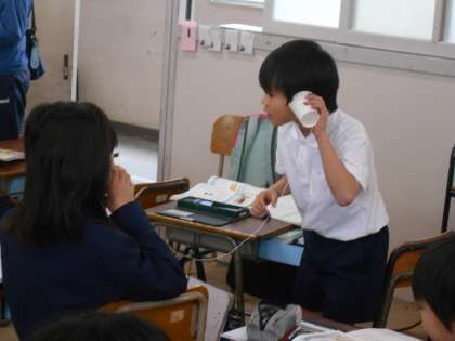 糸に軽くふれたり、しっかりつまんだりして、ペアで協力して実験していました。
