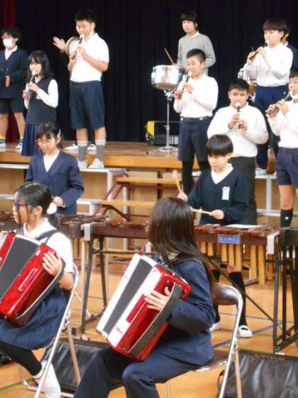 次は5年生の合奏「銀河鉄道9997」でした。明日の学習参観に向けて、がんばっていました。