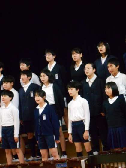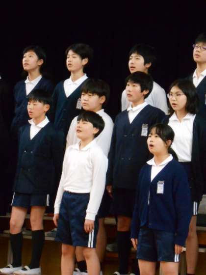 6年生の合唱「明日を信じて」です。6年生も美しい歌声を響かせていました。声変わりを迎えている子もいますが、考えて工夫して歌っているようです。