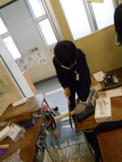 のこぎりは、使い慣れるまでに少し時間がかかります。木を押さえるのにも、のこぎりで調子よく切るのにも、こつをつかむことが必要です。