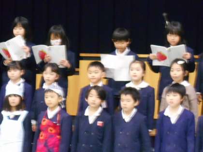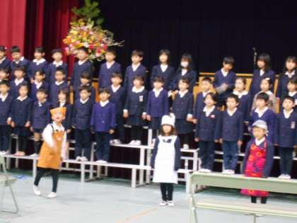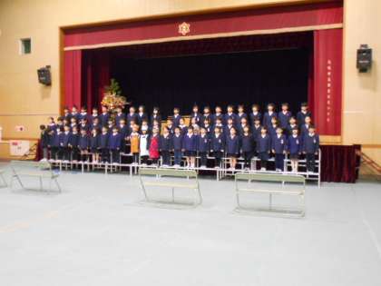 1年生が入学式で歓迎の演技をします。その最後の練習の様子です。