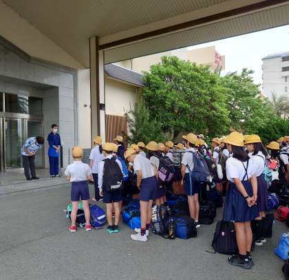 「海老江東小学校の皆さんは、食事のときのホテルの職員へのあいさつもよくでき、とても礼儀正しかったです。また廊下ですれ違ったときもあいさつがよくできて、素晴らしかったです。」