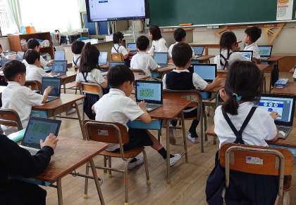 そして今日は、デジタルドリル「なびま」の使い方を学習しました。「なびま」の支援員さんにも手伝っていただいて算数のドリルをやってみました。