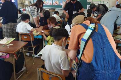 5年生は、家庭科で裁縫をしました。玉結びや、玉どめの練習です。子どもたちにとってはかなり難しくて、お家の方に教えてもらったりしながら頑張っていました。