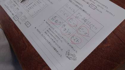 シートはビンゴになっているので、みんなで答え合わせをしながら、ビンゴを完成させます。「やった!ビンゴや!」楽しみながら、いろいろな野菜をしっかり食べる意欲を持つ事が出来ていました。