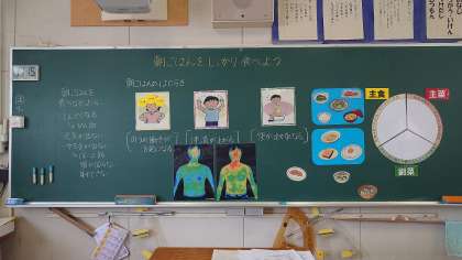 「ごはんやパンからできるブドウ糖は脳の働きをよくする力があります。でも、朝ごはんを食べないと、ブドウ糖がつくられないから、しんどくなったりぼーっとしたりするのですね。」とお話がありました。子どもたちも納得したようです。