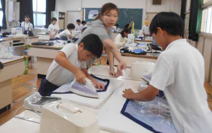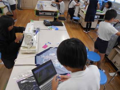 ミシンは自動で針が動くので、まっすぐ縫うのにみんな集中しています。