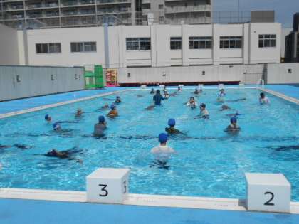 プール水泳最終日の今日、6年生は恒例の着衣泳をしました。