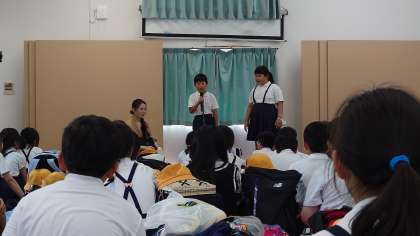 学級写真撮影の後、集会室でお弁当を食べさせていただきました。