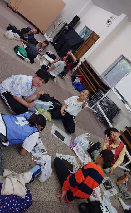 自分の部屋などに飾るイメージで、ポスカ使って、登山や魚つかみ、カレーづくりなど、林間の思い出を板の上に表現していました。