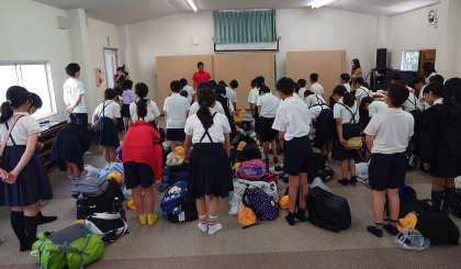 児童の代表が、感謝の言葉を伝えてくれました。宿舎の方からは、感謝の気持ちを言葉にして表すことの大切さをお話してくださいました。そして「ありがとうと言われる人になってください。」という期待を込めた言葉もいただきました。