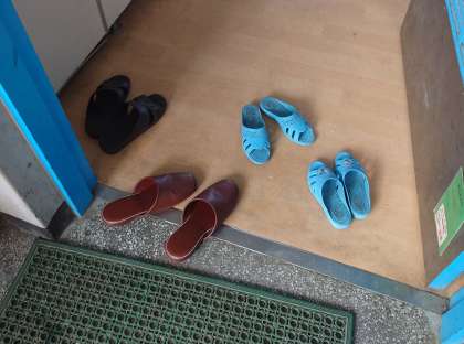 そして今日、トイレを見に行くと、スリッパが上手にそろっているところがほとんどでした!素敵ですね。すぐに実行できる海老っ子たちです。
