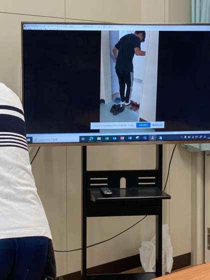 「トイレから出るときには、次の人がはきやすいように、後ろを向いてスリッパを脱ぐといいですよ。」「ほら、かんたん。」と動画で、教員が繰り返し上手で簡単な脱ぎ方を見せていました。