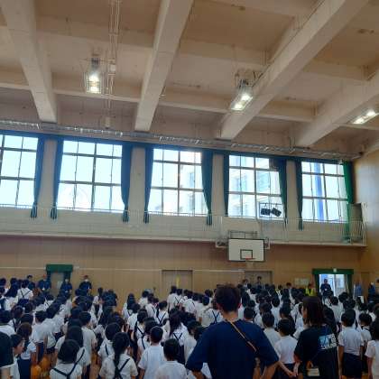 講堂には、お世話になる方々にもお集まりいただき、「よろしくお願いします。」とあいさつをしました。