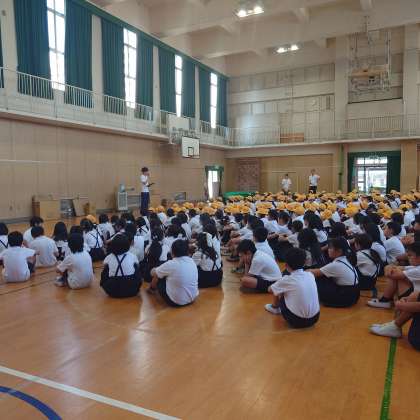 「お・は・し・も」を意識して、全児童静かに整列して避難をすることができました。