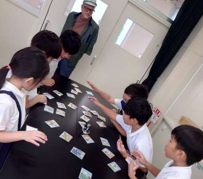 理科室では「防災かるた」に、1.2年生が取り組みました。地域の防災リーダーをはじめ、地域の皆さんが協力してくださいました。
