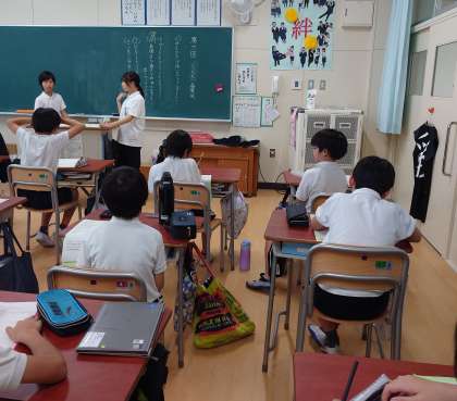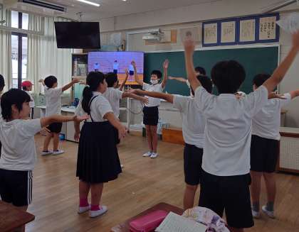 そしてスポーツ委員会は、ラジオ体操の練習をしました。当日は、全校児童の前に立って手本を示します。音楽に合わせて間違えずに出来るように、がんばっています。