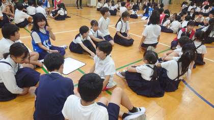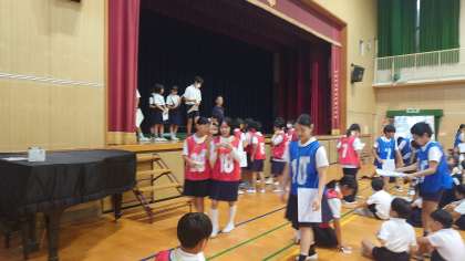 今朝は久しぶりに、講堂にスマイル班で集まって、ゲーム集会をしました。