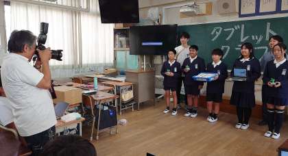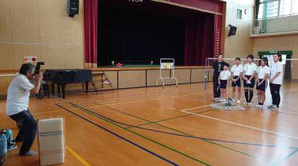 また6時間目は、クラブ活動の写真撮影です。いつもの活動場所で、画角の周りいる4.5年生に見守られながら撮ります。