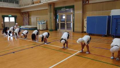 講堂を4つ分け、様々なテーマで練習するサーキットの学習を行いました。