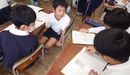 子どもたちは友達の意見をしっかりと聞き、ハンドサインで付け足すなどしながら考えを深めるなど、落ち着いて学習に取り組めていました。