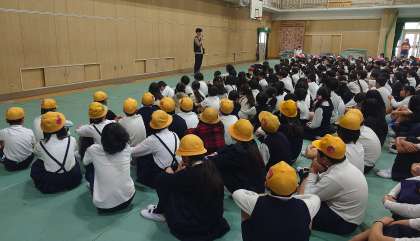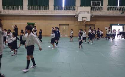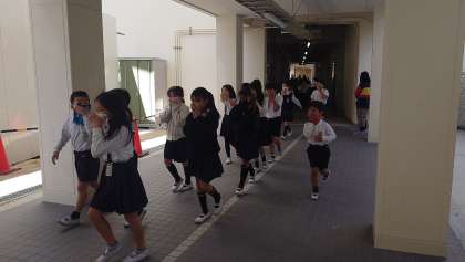 子どもたちは、放送をしっかりと聞いて、口にハンカチを当てながら、担任の指示に従って、素早く講堂に集合することができていました。