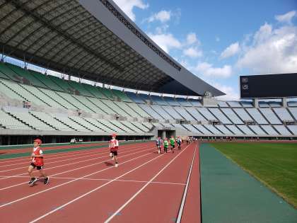 ヤンマースタジアム長居では、100メートル走、400メートルリレーを行いました。