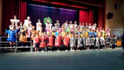 2年生は、国語科の「ニャーゴ」をお芝居にしました。ネコとネズミだけでなく、イヌやニワトリも出てきます。